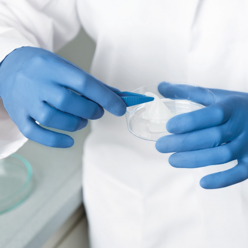 Latexvrije onderzoekshandschoenen voor eenmalig gebruik, gemaakt van uiterst zacht, blauw nitrilrubber, poedervrij. Eenvoudig aan en uit te trekken dankzij de polymeerbekleding aan de binnenkant. Het getextureerde oppervlak rond de vingers garandeert optimale grip. Zeer elastisch en bijzonder scheurvast. Uitstekende pasvorm en hoge tastgevoeligheid. Zowel links als rechts draagbaar.