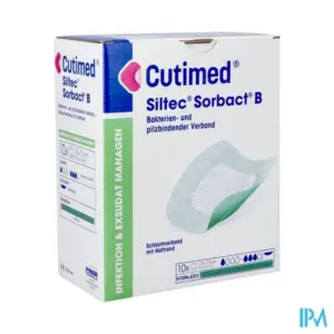 Cutimed® Siltec® Sorbact® is een steriele, bacteriebindende, absorberende polyurethaan schuimlaag voor atraumatische verbandwissels met superabsorberende deeltjes (zichtbaar als lijnen aan de bovenzijde van het verband) die extra wondvocht absorberen en insluiten. De wondcontactlaag is een bacteriebindende, van Sorbact® vervaardigd weefsel dat gebruikmaakt van Sorbact®technologie. De fi xatierand is voorzien van een siliconecoating. Hierdoor worden trauma en pijn tijdens het wisselen van het wondverband geminimaliseerd. De buitenste laag is waterafstotend, maar laat zuurstof en vocht door. Het schuimverband en de superabsorberende strips zijn ontworpen om grote hoeveelheden wondvocht te absorberen en in te sluiten in het verband. Hierbij wordt gezorgd voor een vochtige wondomgeving en wordt het risico op maceratie geminimaliseerd. Cutimed® Siltec® Sorbact® is zeer eenvoudig toepasbaar en beschermt de wondlocatie. Cutimed® Siltec® Sorbact® laat geen residu in de wond achter. Het wondverband neemt wondvocht uitstekend op, zelfs onder compressie.