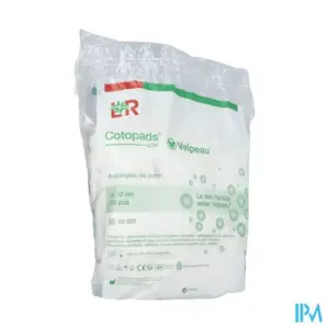 Rechthoekige katoenpads van 100% katoen, ideaal voor medische verzorging, huidreiniging en het absorberen van lichaamsvloeistoffen bij oppervlakkige wonden of injecties.