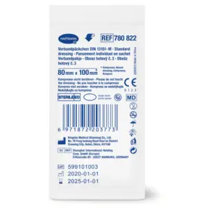 Hoogelastisch fixatiezwachtel met wondkompres. Het steriele verbandpakje omvat een fixatiezwachtel met wondkompres.