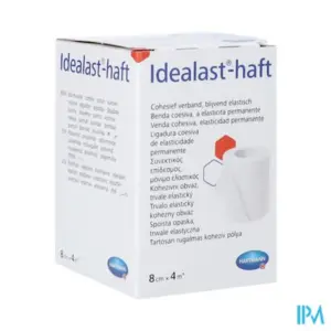Elastische zwachtel.Idealast® -haft is een cohesieve duurzaam elastische zwachtel met korte rek, ongeveer 90% rekbaar, het cohesief effect aan weerszijden zorgt voor een perfecte aanleg van het verband, goede arbeidsdruk en matige rustdruk,luchtdoorlaatbaar, steriliseerbaar (stoom op 134°C), radiotransparant, wit.