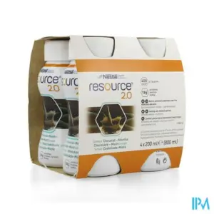 Resource 2.0 Chocolade-munt 4x200ml 12314414 is een voedingssupplement, verkrijgbaar in uw buurtapotheek of online apotheek. Neem niet meer dan de aanbevolen dagelijkse dosis vermeld op de verpakking. Het vervangt geen gezonde levensstijl en gevarieerde en evenwichtige voeding. Vraag raad aan uw apotheker. Het product altijd buiten het bereik van kinderen houden.