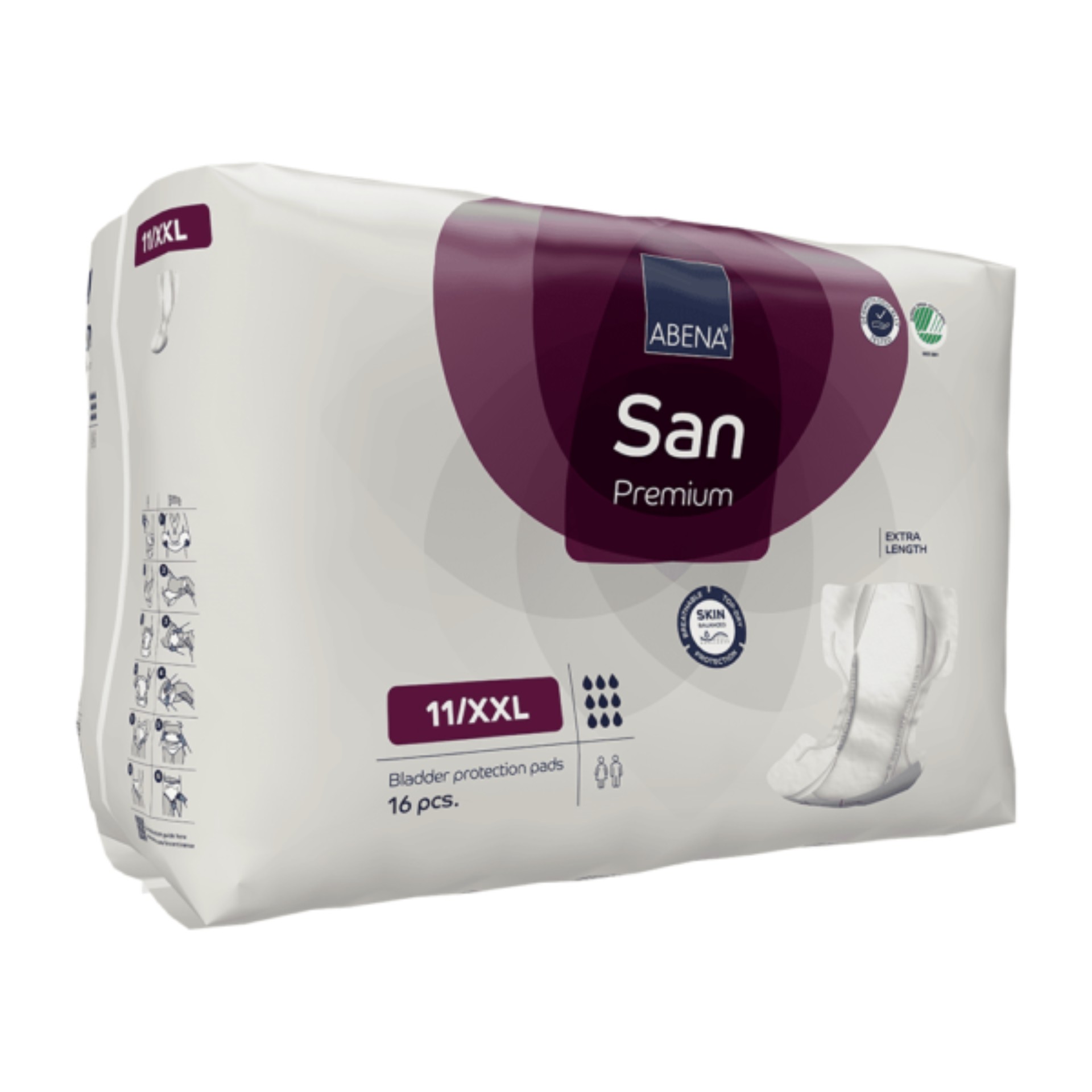 De ABENA San Special inlegverbanden bieden betrouwbare bescherming bij licht, matig en zeer zwaar urineverlies, en zijn dankzij de extra hoge anti-lekranden ook geschikt bij verlies van ontlasting. Geschikt voor mannen en vrouwen en ontworpen voor gebruik in speciaal fixatieondergoed met een breder kruisgedeelte. De speciale TopDry-laag en maximaal ademende folie houden de huid gezond, terwijl het milieuvriendelijke ontwerp met Nordic Swan Ecolabel duurzaamheid ondersteunt.