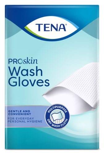 De TENA ProSkin Wash Glove combineren het zachte van een wipe met het gemak van een washand en zijn ideaal voor het dagelijks wassen van het lichaam. De handige wegwerpwashand bedekt de hele hand voor een hygiënische reiniging. De washand is gemaakt van extra zachte materialen voor de verzorging van een gevoelige huid. Gebruik samen met TENA Wash Cream of Wash Mousse. Ideaal voor dagelijks gebruik voor een schone en gezonde huid.
